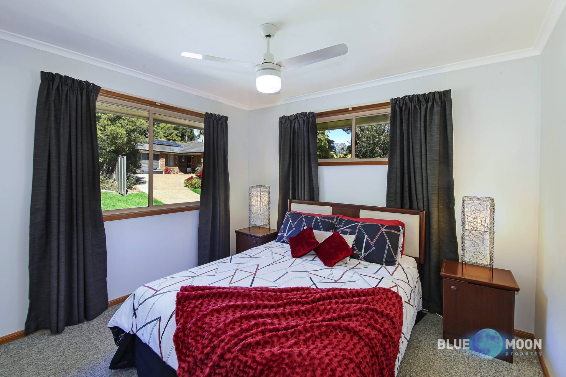 This much loved family home designed and built by the current owners who are now downsizing is walking distance to the town. It is situated on a generous elevated 1130 m2 allotment and the home has a Perfect N/E aspect in peaceful and family friendly wide cul-de-sac. The home boasts a great Family room next to the large kitchen with Walk in Pantry and split system reverse cycle air conditioner along with a separate media room, 4 Bedrooms – Master with En suite and Walk in Robe located at front of home– other 3 Bedrooms towards the rear with built- ins, ceiling fans and large windows. Come and inspect the beautiful polished timber floors and internal timber stairs which lead downstairs to an oversized 95 m2 Double Garage. Great for the trades person to store trailers and equipment. Abundance of cupboard space, spacious laundry and family bathroom. North facing front verandah and covered BBQ area at rear overlooking the spacious almost level backyard.