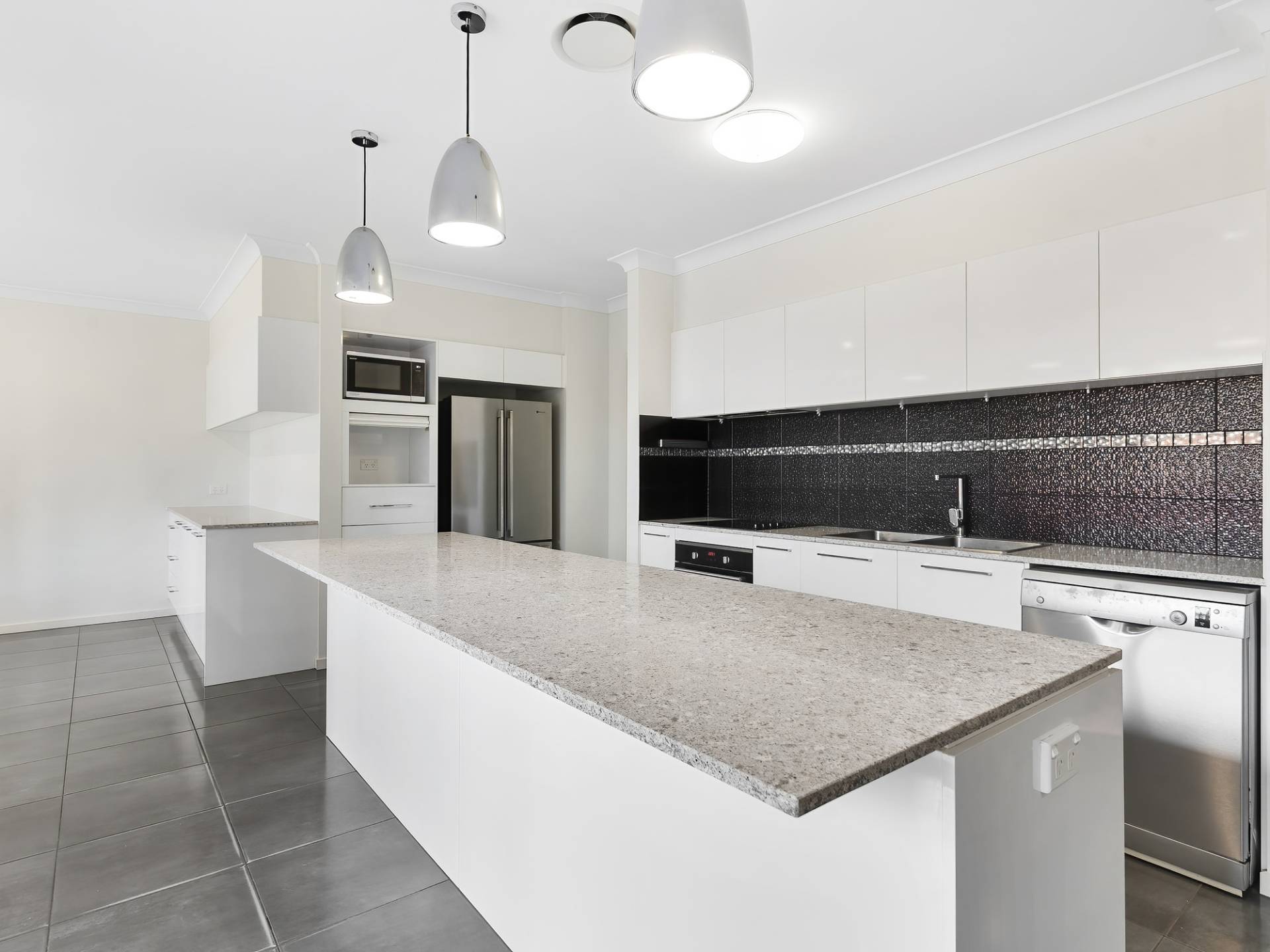 Modern kitchen with Caesarstone & a 2.9m island bench & pendant lighting