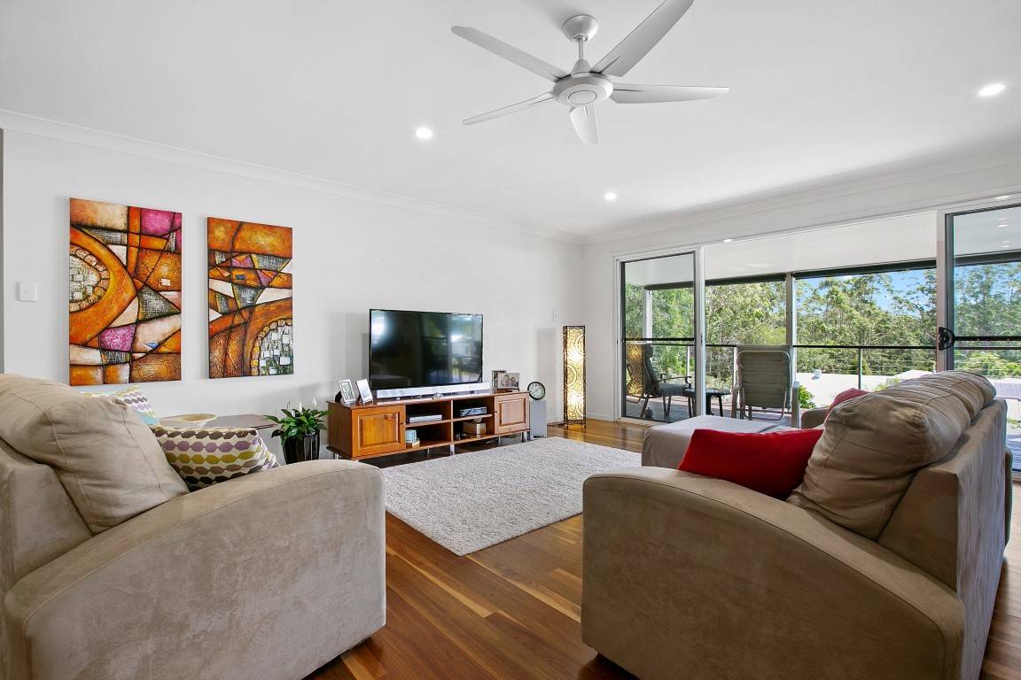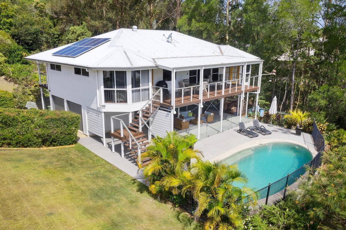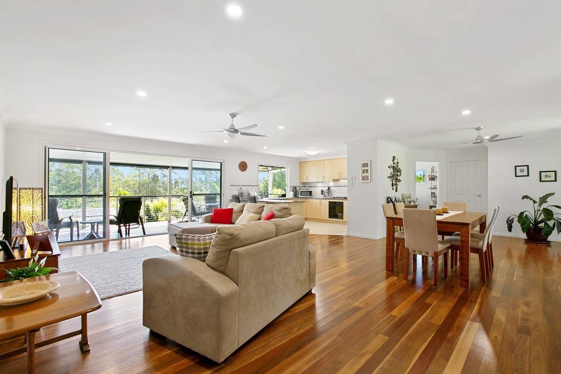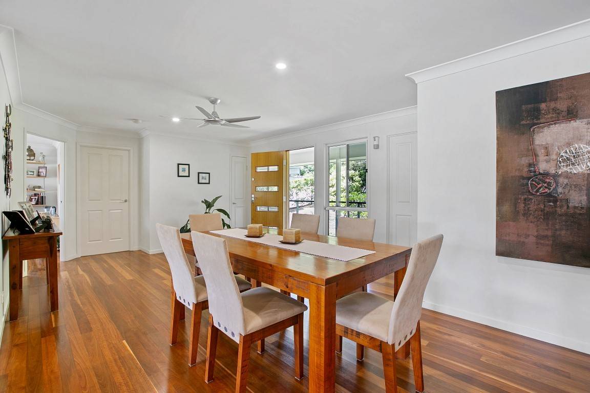 Positioned perfectly on the block to capture Mt Cooroora views from the expansive inclusive living deck space. This immaculate property features gorgeous spotted gum flooring, open plan living and welcomes cool breezes throughout from the elevation. Featuring a well-appointed modern kitchen with gas cooking, granite-look bench tops, Bosch dishwasher and space to appreciate shared family gatherings. Additional inclusions are: