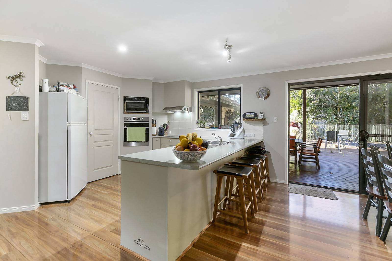 This is an expansive home perfect for the larger family, boasting four large bedrooms all with built in robes and an additional media room. Retreat to the privacy of the Master Bedroom with ensuite and ample storage in the walk in wardrobe. This beautiful home offers a formal dining and lounge area with split system air conditioning for comfort. Combustion fireplace will keep the whole family warm in the cooler months. Gorgeous timber floorboards run through the home and lead to an open plan kitchen outfitted with modern appliances. Soak up the tranquility of the fully fenced larger block from the sweeping private deck and plunge pool. Double garage for security, ample tank water and solar energy complement the home. This property is perfect if you want the quiet life but still close to beaches, shops, and restaurants.