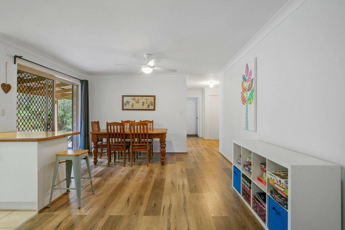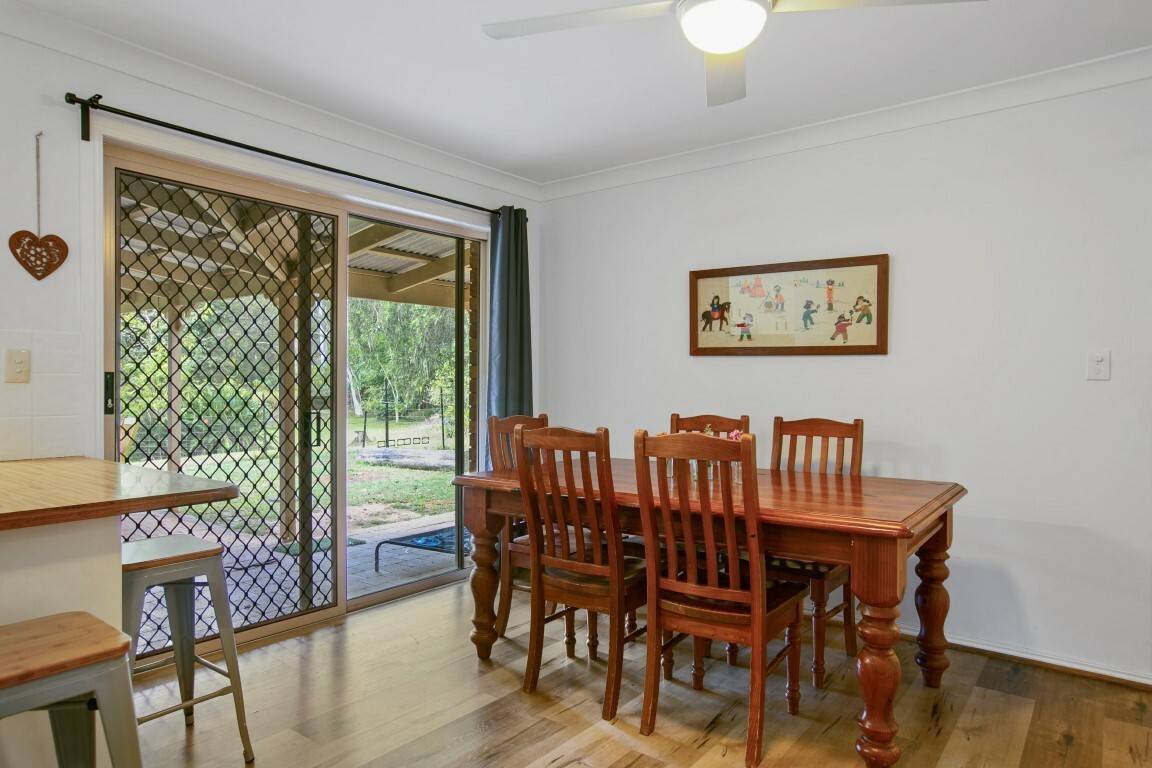 Welcome home to this beautiful property, which is positioned on 2.5 acres of lush, usable land. Perfectly positioned on a corner block to best maximise space, this property has abundant potential with the possibility of an additional dwelling for a future second income stream. Owing to the location of the block this property has fewer bordering neighbours, meaning you will be invited home by peace and tranquillity to your own private sanctuary. Contributing to the property’s appealing frontage is the decorative fascia, which is a welcoming sight upon approach. The solid four-bedroom home has an abundance of light throughout, and you will be treated to an appealing green outlook from every window. Perfect for watching the kids play or to take in the sights, the spacious kitchen overlooks the outdoor undercover patio which is ideal for entertaining. Newly installed timber look flooring compliments the spacious dining and living areas, adding a modern touch.