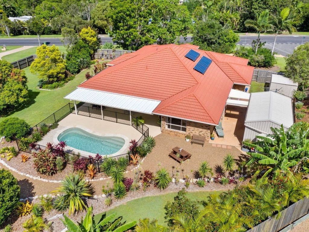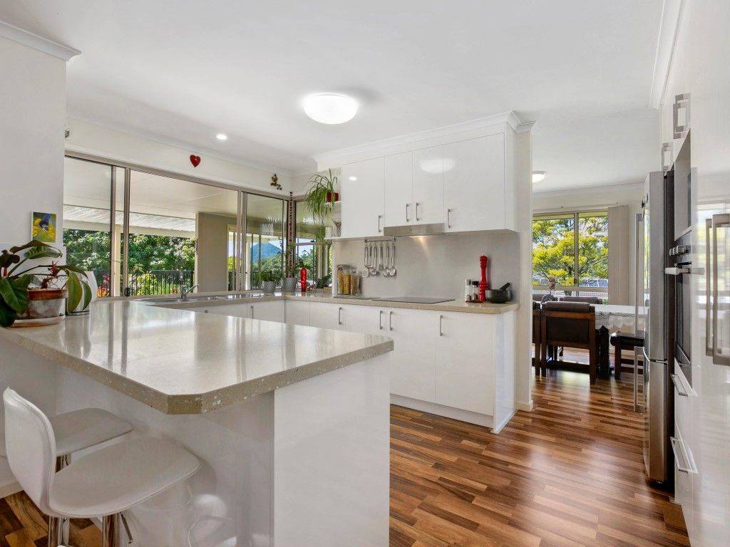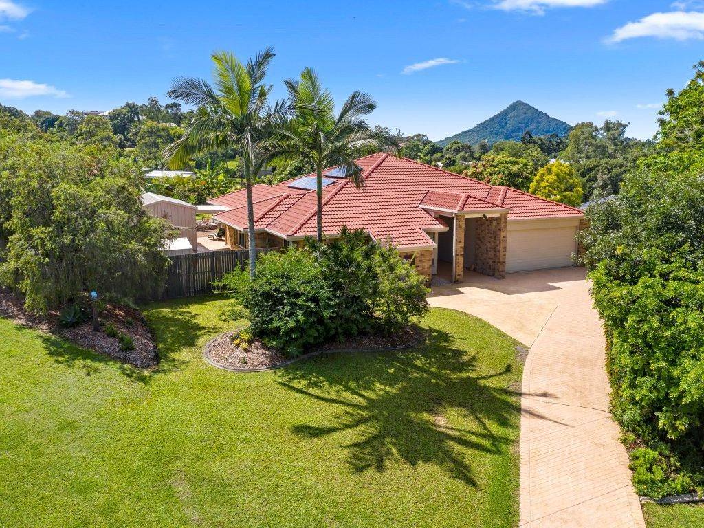 This fantastic family home has been built to last and the quality of fit and finish shows. Arriving at the porte cochére entry, you will immediately feel at home in this relaxed environment. This near acre block truly provides the sense that you are indeed living amongst botanical gardens. Relax under the expansive covered outdoor area overlooking views of Cooroy Mountain and the sparkling inground pool, sprawling lawn, as well as the established gardens and the majestic mature trees, it's truly your own piece of paradise.